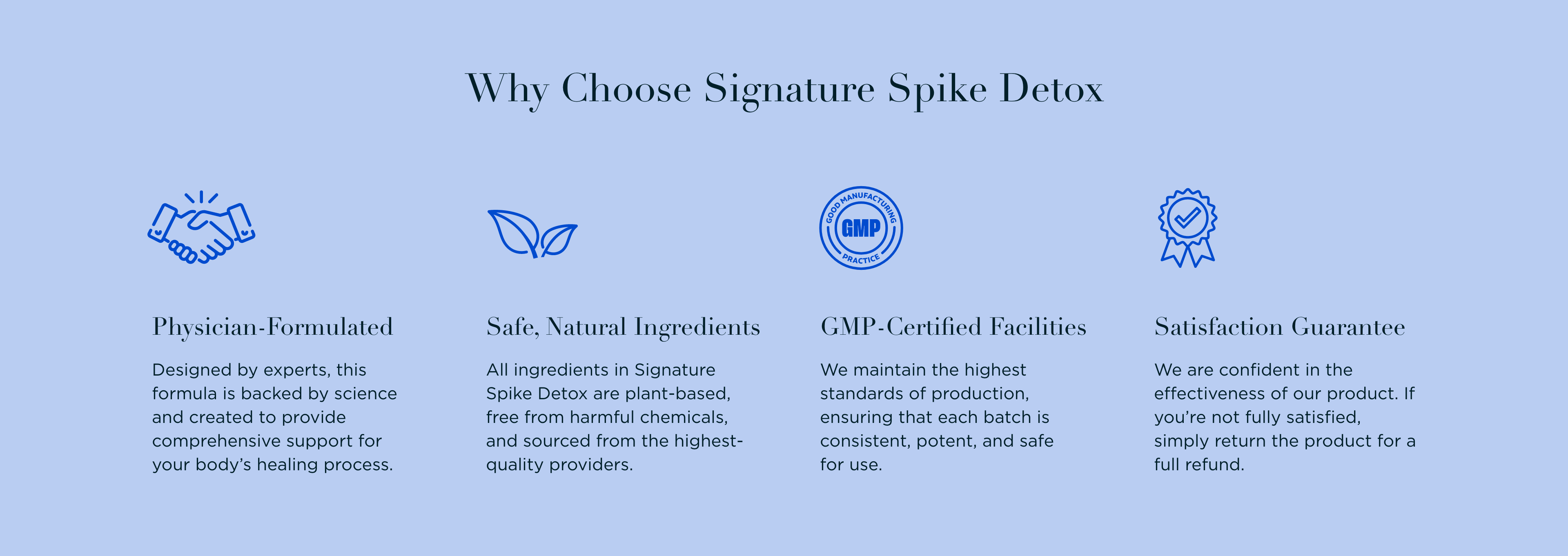 The Signature Spike Detox Formula is a physician-formulated supplement designed to support your immune system, detoxify, and promote overall wellness in the wake of post-viral exposure. Specifically crafted for those dealing with lingering symptoms, this advanced formula uses carefully selected ingredients that work synergistically to help cleanse your body, reduce inflammation, and restore your energy levels.