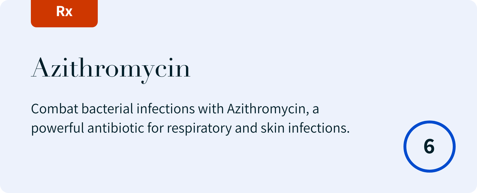 Azithromycin (250 mg, 6 tablets): Combat bacterial infections with Azithromycin, a powerful antibiotic for respiratory and skin infections. Read More…
