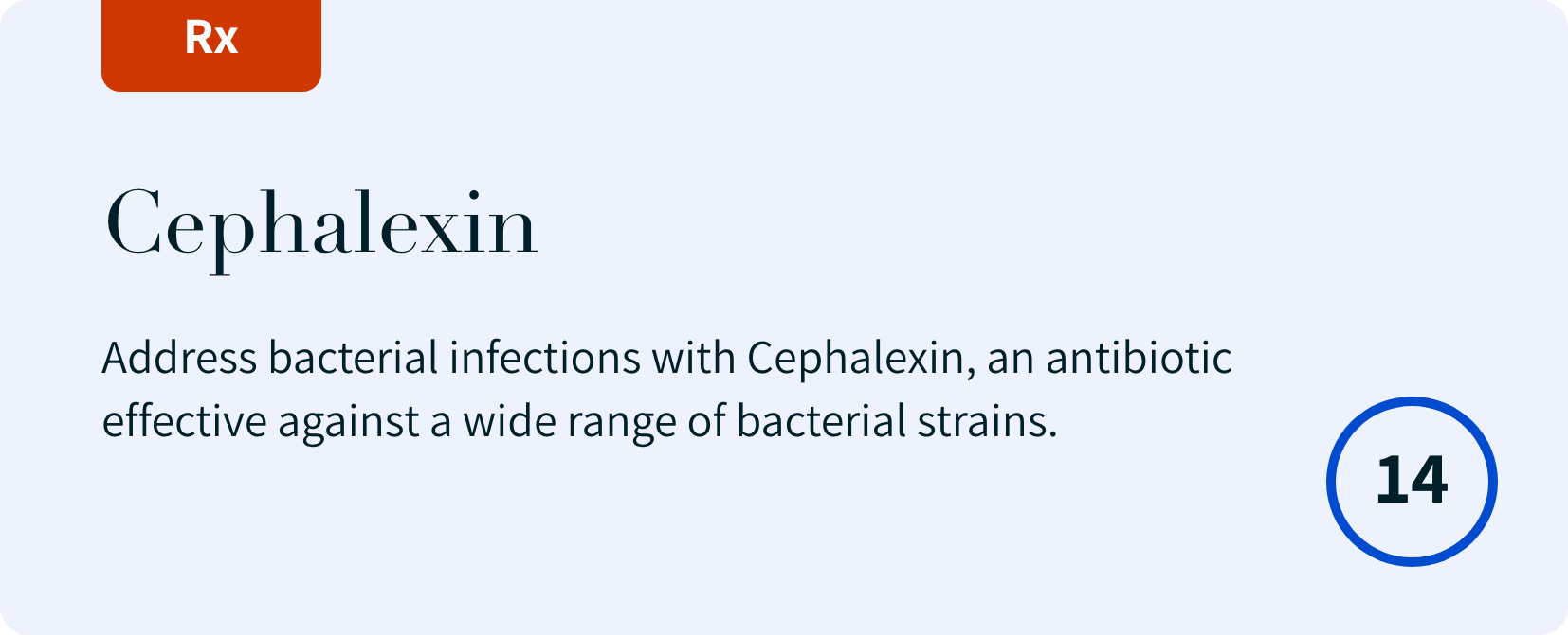 Cephalexin (500 mg, 14 tablets): Address bacterial infections with Cephalexin, an antibiotic effective against a wide range of bacterial strains. Read More…