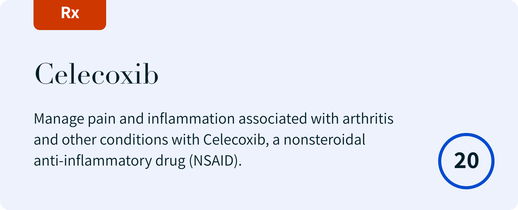 Celecoxib (200 mg, 20 capsules): Manage pain and inflammation associated with arthritis and other conditions with Celecoxib, a nonsteroidal anti-inflammatory drug (NSAID). Read More…
