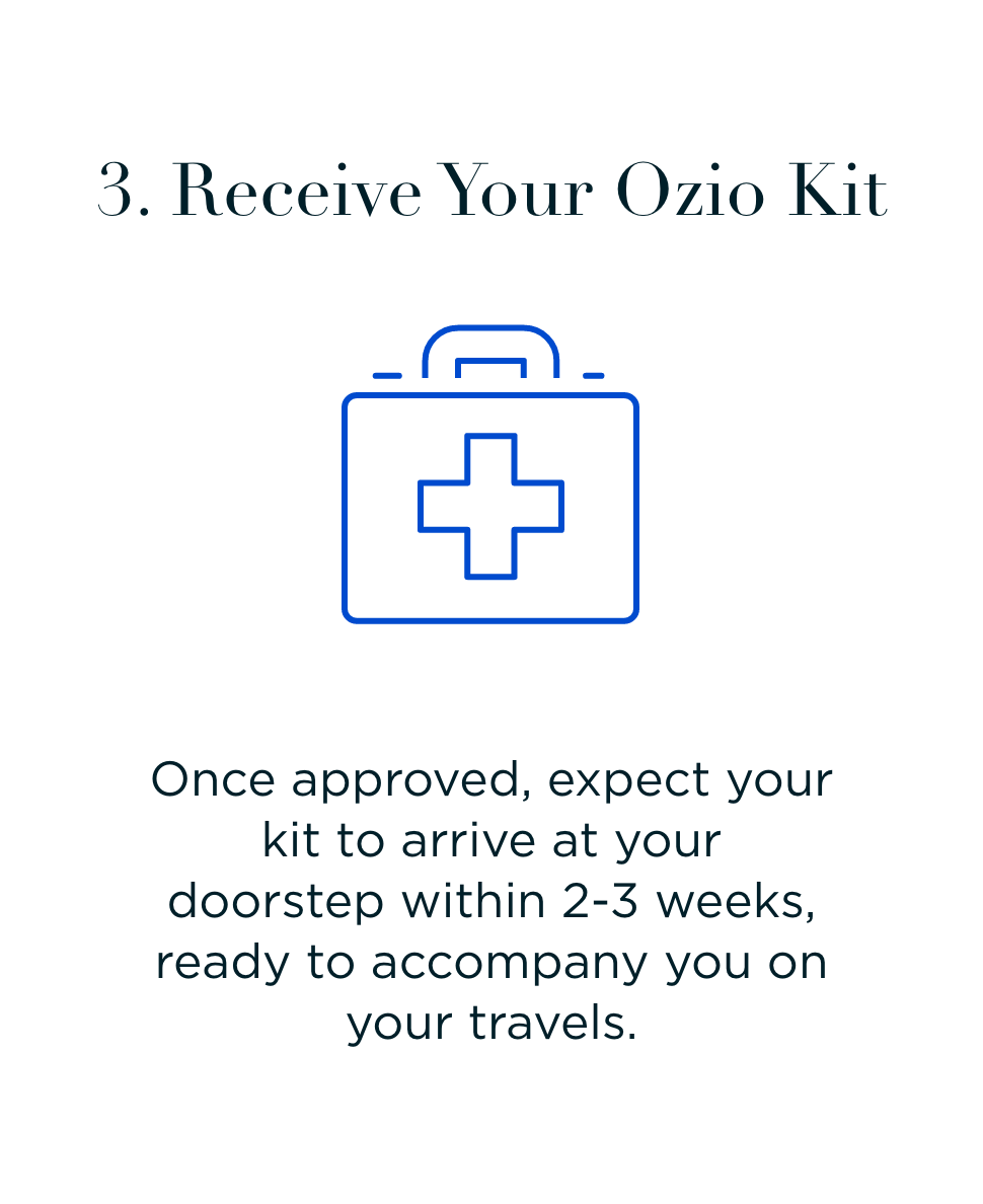 Receiving a virtual care consultation to obtain your emergency medical travel kit is simple and convenient. After purchasing your kit, you'll receive an email containing instructions on how to complete the required intake form. Once you've submitted the form, one of our Wellness Company providers will evaluate your information and reach out to you via phone or email to conduct a virtual consultation. During this consultation, the provider will review your health history, assess your needs, and ensure that the kit is suitable for you. After approval, your kit will be promptly shipped to your designated address, allowing you to travel with confidence knowing you have the necessary medical supplies on hand.